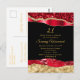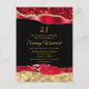 Esta elegante y glamurosa invitación de cumpleaños presenta lágrimas de glamour falsas rojas y doradas sobre un fondo negro. El texto combina letra manuscrita y fuentes modernas sans serif para un look clásico y sofisticado.