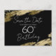 Diseño elegante con salpicaduras de pintura dorada falsa. Todo el texto es ajustable y fácil de cambiar según las necesidades de su fiesta. Excelente diseño elegante de plantilla de cumpleaños número 60. Guardar la fecha