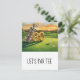 Celebre 80 años increíbles en el green con esta invitación de tarjeta postal de cumpleaños número 80 de Golf "Let's Par-Tee". Con una bandera de golf clásica y bolas de golf detalladas en un green iluminado por el sol, este elegante diseño de acuarela combina la energía de una divertida celebración con el encanto atemporal de un club de campo.