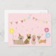 Ilustración adorable de perros vestidos y listos para una celebración de cumpleaños.