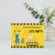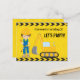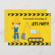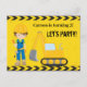 Invitación de cumpleaños personalizada y genial para un niño que ama los vehículos de construcción en negro y amarillo. Tarjeta postal divertida para niños para un pequeño que ama las excavadoras, así como los coches y camiones. Personaliza con la información de la fiesta de tus hijos en la parte posterior.