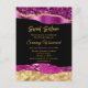 Esta elegante y glamorosa invitación de cumpleaños de dulces dieciséis presenta lágrimas de brillo falso de oro y púrpura sobre un fondo negro. El texto combina una escritura a mano y fuentes sans serif modernas para un look clásico y sofisticado.