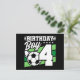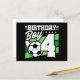 ¡Este diseño de fiesta de cumpleaños es perfecto para una fiesta de cumpleaños de niños de 4 años que celebra su cuarto cumpleaños! ¡Ideal para los niños que les gusta jugar al fútbol, ver fútbol o futuros jugadores estrella de fútbol! Muestra una pelota de fútbol en un gráfico del campo de fútbol con el número 4 para el cuarto cumpleaños de un niño.