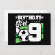 Postal Fiesta de fútbol de 9 años Cumpleaños niña 9 años