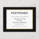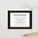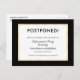 ¿Necesitas posponer tu evento? Envíe esta postal para que sus huéspedes sepan el cambio en los planes. El diseño es sencillo y está decorado con un elegante borde negro y dorado.