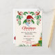 Postal Fiesta de Navidades Cute Moderno con ilustracion de cara Santa, botánicos de invierno, pájaros, rama de pino, regalos, et.