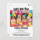 Invitación de cumpleaños para perros. Puede ser para una fiesta de perros o un cumpleaños de niños. Cuatro perritos lindos se sientan con sombreros de fiesta rodeados de globos de colores - Vamos a Empezar esta Fiesta. Va a ser increíblemente divertido! Personaliza como desees.