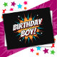 Este diseño genial del chico de cumpleaños héroe del libro cómic es perfecto para un tema de fiesta de cumpleaños de superhéroes. ¡Genial para chicos de todas las edades que aman a los superhéroes de los libros cómics o villanos con superpoderes! Cuenta con la cita de feliz cumpleaños '¡Cumpleaños Chico!' en un tema de superhéroe de libro cómic que el super chico de cumpleaños ¡AMARÁ!
