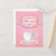 Esta postal le da las gracias por un fiesta de té. Ya sea el cumpleaños de un niño o un fiesta de té con ducha de novia, esta dulce postal le da reconocimiento a cualquier muchacha que se reúna. Un mensaje personalizado de agradecimiento imprime en el fondo rayado de color rosa con el nombre del honorario impreso en el cartel debajo de la taza. Personalizar el mensaje en el reverso o borra el texto del marcador de posición para escribir a mano el suyo propio. Disponible con productos a juego.