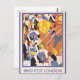 A cualquiera le encantaría recibir esta postal de viaje con un ilustracion retro de un fiesta elegante y colorido en Londres, Inglaterra.