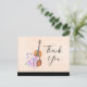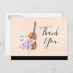 Un fiesta te agradece postcard con un diseño femenino. Ilustrado con una acuarela que representa un violín de madera, algunas zapatillas de ballet rosadas descansan sobre él y decoradas con flores y mariposas. Colocado en un fondo de color rosa melocotón. Mensaje en la parte posterior que se puede personalizar.