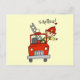 Un bombero con figura de palos en un motor de bomberos y un texto que dice "¡Al rescate!" en camisetas para bomberos, caramelos, tazas, imanes, tarjetas, pegatinas, mousepads y otros equipos para bomberos.