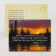 La hermosa escritura inspiradora personalizado postal representa una asombrosa puesta de sol sobre el agua y presenta la Biblia Verse Philipans 1 2-3, "Gracia y paz para ti de Dios nuestro Padre y el Señor Jesucristo. Le doy las gracias a mi Dios cada vez que te recuerdo". El saludo de espalda puede ser personalizado y la tarjeta se puede usar para muchas ocasiones.