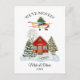 Soar into the season with this whimsical vintage style Aviation themed new home announcement postcard! Design features a Cessna airplane flying in the sky, proudly hauling a fully decorated Christmas tree strapped atop its wings. Below, a house surrounded by snow covered pine trees and a sled, while “WE'VE MOVED!” shines above the cute scene.