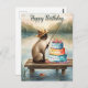 Celebrate a bold and stylish birthday with this glamorous watercolor illustration of a fierce, high-fashion Siamese cat dressed in a chic fishing outfit. She stands on the dock in a confident power pose, holding her three trophy fish with attitude. Luxury fishing gear surrounds her, along with a small elegant cupcake topped with a gold candle for a birthday touch.