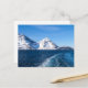 Fotografía de un fiordo noruego, con la estela de un barco en primer plano y montañas nevadas en segundo plano.