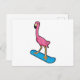 Postal Flamenco como Esquiador con Tabla de Esquí