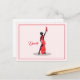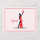 Flamenco Dancer disgustado diseño en rojo y negro. Está sosteniendo un ventilador y parado en una plataforma.
