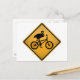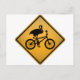 Signo de advertencia que muestra la silueta de un flamingo montando una bicicleta