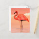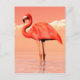 Un flamingo rosa parado en el agua por la colorida puesta de sol
