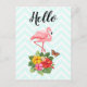 Postal Flamingo rosado e Hibiscus tropical Hola