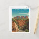 Una llamativa y nostálgica representación de los Flinders Ranges en el sur de Australia, conocido por sus dramáticos paisajes, sus montañas escarpadas y su rico patrimonio indígena. El diseño capta las formaciones geológicas únicas, los colores vibrantes de los acantilados ocres y las vastas llanuras de fondo que caracterizan esta notable región. La obra de arte, de estilo vintage, evoca el sentido de la aventura y la exploración, invitando a los espectadores a experimentar la belleza natural, la diversidad de la vida silvestre y las impresionantes puestas de sol que los Flinders Ranges tienen que ofrecer.