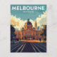 Capture the historic grandeur of Melbourne, Australia, with this classic retro-style travel postcard. It features the city's most iconic building, Flinders Street Station, with its famous arched entrance, dome, and clock tower, situated at a bustling intersection with trams. This vintage-inspired artwork perfectly captures the energy of the Victorian capital. Ideal for railway enthusiasts, architecture lovers, and anyone seeking a high-quality souvenir or a stylish piece of Australian wall art.