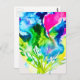 Postal flor abstracta de ciclamen rosa en acuarela