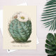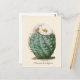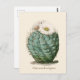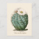 Postal botánica de arte fino de la revista botánica Curtis. Ilustracion botánico de un Cactus de barril (Echinocactus Hexaedrophorus) con una flor blanca floreciente.