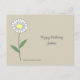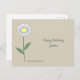 Una postal de cumpleaños marrón claro con un ilustracion de flores de margarita botánica en colores pastel (Leucanthemum vulgare) y textos de personalizable (arriba y abajo): perfecto para acompañar un regalo o mandar a tu mejor amigo. En la parte trasera hay una flor de margarita en línea de arte. La margarita es la flor de nacimiento de abril y es un significado simbólico de bondad, pureza, inocencia, alegría y alegría.