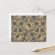 Esta postal tiene cuervos, libélulas y escarabajos rodeados de flores y hojas en tonos malva y gris sobre un fondo bronceado.