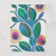 Decoración de su escritorio con esta postal de arte original. La flor del desierto es una hermosa acuarela y obra de arte abstracta de una planta florida. Está en tonos verdes y azules, con flores de albaricoque y rosa sobre un fondo gris y blanco. Las obras de arte de estilo doodle sólo están disponibles en The Art of Being Beth.