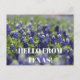 ¡Hola desde Texas! Hermosas, elegantes, flores de Bluebonnets, postal de flores del estado de Texas. Perfecto para mandar a parientes y amigos.