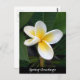 Postal: Hermosa flor Fragipani con hojas verdes en el fondo. Esta flor típica de Asia, que aparece en muchas pinturas/películas de belleza y amor, ha llegado al mundo occidental en perfumes y arreglos florales. Fotografía original/Arte/Diseño de work4dream.