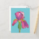 Una postal floral decorada con una flor de iris rosa y violeta de bonito pintada con tinta negra y acuarela en varios tonos rosa y violeta con verde oliva para el tallo en un fondo azul turquesa. Puede cambiar el color de fondo para que se ajuste a sus necesidades.
