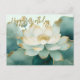 Flores de loto con bordes dorados sobre fondo verde claro. Feliz cumpleaños.