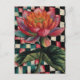Postal Flor de Lotus en fondo de tablero de ajedrez