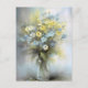 Postal Flor de margarita azul pastel, blanca, amarilla en
