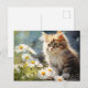 Tarjeta postal de acuarela digital de flores de margarita brillantes y vibrantes para aquellos que nacieron en abril con un adorable gatito esponjoso. ¡Envíe a su ser querido una tarjeta postal especial de la flor del mes de nacimiento!