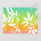 La silueta de flores de la pasión tropical blanca sobre un fondo de arcoiris de tonos pastel da a este diseño un aire soleado y luminoso.