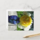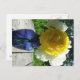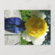Postal Flor de peones amarillos en la maleta azul