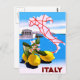 Hermosa Italia. Esta impresión de viaje vintage representa Italia, limones y flores.