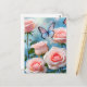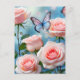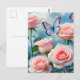 Postal Flor rosa rosa suave mariposa azul
