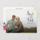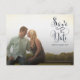 Magnífica tipografía de escritura cursiva azul marino en la parte delantera de este diseñador ahorre la postal de fecha {que es parte de una suite completa que coincide} en la que puedes subir con tu propio compromiso/guardar el retrato de la foto de fecha. Personaliza fácil y rápidamente a este diseñador con la impresión profesional guardar la postal de fecha aquí y ahora simplemente tecleando sobre el texto del ejemplo y agregando tu propia fotografía. Elegante, moda, escritura naval simple y elegante/tipografía cursiva
