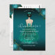 Esta elegante tarjeta de invitación de Quinceañera presenta a una niña con un vestido azul turquesa con acentos florales en azul turquesa y dorado. La parte trasera cuenta con acentos de ramillete de rosas en azul turquesa y dorado. Fácil de personalizar haciendo clic en "Personalizar".