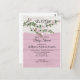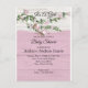 Este diseño tiene una rama de diminutas flores de hidrangea con vegetación que fluye por la parte superior del diseño. En la parte superior dice que es un Chica y debajo de las ramas hay un pequeño escenario de huevo en un nido con una mami mirando aves. Las flores y el pájaro están en un rosa suave. Debajo del diseño floral hay una pancarta con el nombre de la madre y los detalles de la ducha. Todo el diseño está situado sobre un fondo de madera de granero encalado.