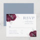 Postal RSVP de la Dusty Boda Azul Floral Borgoña Personalizada