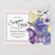 Elegante y botánico color púrpura y amarillo acuarela floral en la sorpresiva tarjeta postal de 16 cumpleaños de la fiesta de la invitación rosa.
