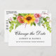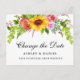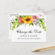 Moderna y elegante acuarela Cambio floral de girasol La postal del Boda de la fecha presenta girasoles, rosas rosas rosas y vegetación