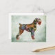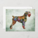 Perro Schnauzer con un deslucido perfil floral sobre un fondo verde pintado en textura. Un regalo encantador para el dueño de un mascota.